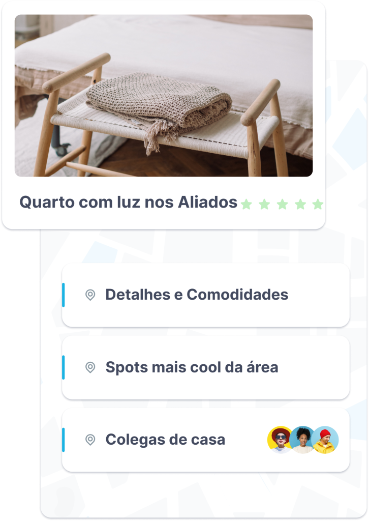 É por isso que disponibilizamos todas as informações sobre o apartamento, a localização, o senhorio e até mesmo sobre teus futuros colegas de casa.
